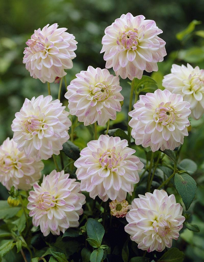 Георгина декоративная виттем - это изысканное растение с белыми цветками, украшенными розовым оттенком. Ее стебель прочный и прямой, достигает высоты до 55 см, что делает ее идеальным выбором для создания красивых цветочных композиций в саду или на клумбе. Листья георгины имеют интересную форму и яркий зеленый цвет, что придает растению особый шарм.