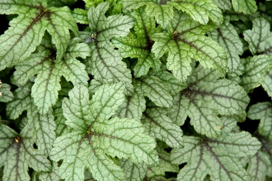 Рассада гейхереллы Кимоно (Kimono) поражает необычным эффектным видом – резная листва имеет зеленую окраску, сквозь которую проступают бордовые прожилки. Этот красивый многолетник используют для украшения бордюров, наполнения смешанных клумб, а также декорирования альпийских горок.