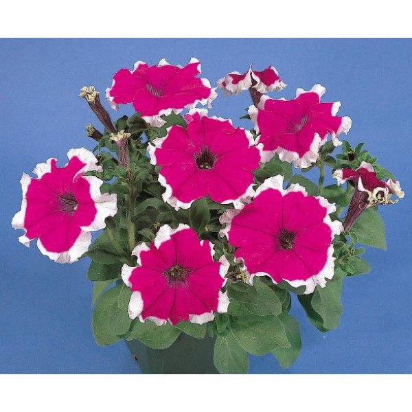 Петуния грандифлора хулахуп вельвет - это настоящий художник среди садовых растений! Ее ярко-розовые цветы с белой каймой напоминают нежные акварельные картины, создавая удивительный визуальный эффект. Высота этого растения может достигать 15-20 см, а диаметр цветка радует глаз своими 8-10 см. Петуния хулахуп вельвет предпочитает солнечные места и плодородные почвы, поэтому выберите для нее самое яркое место в вашем саду.