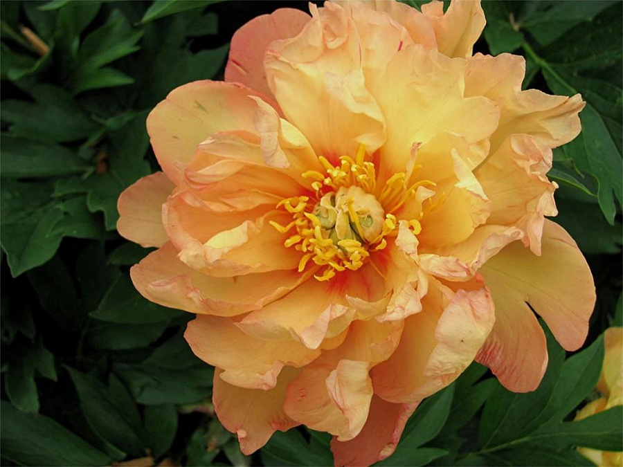 Пион ито сингинг ин зе рейн - это великолепное растение с уникальным характером. Его стебель прочный и изящный, достигает высоты до 70 см, а цветки размером до 20 см поражают своей красотой. Окраска цветков хамелеоновая, меняется от нежно-розовой до ярко-красной, создавая неповторимый вид. Листья пиона ито сингинг ин зе рейн зеленые, что придает растению особый шарм.