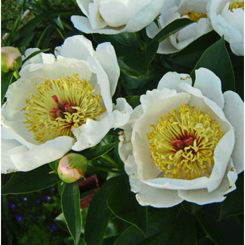 Луковицы пиона травянистого Реквием ― межвидовой гибрид, который был выведен американскими селекционерами в 1941 году. Куст, достигающий в высоту 85 сантиметров, сохраняет декоративность на протяжении всего сезона. На прямых стеблях распускаются простые белоснежные цветы с легким светло-розовым оттенком. Лепестки имеют прекрасную текстуру, как будто изготовлены из воска. Пестики желто-зеленого цвета имеют опрятные розовые рыльца. С цветами эффектно контрастируют очень крупные глянцевые листья насыщенного зеленого цвета. Сорт со средне-ранним и очень обильным цветением порадует прекрасными цветами в мае.