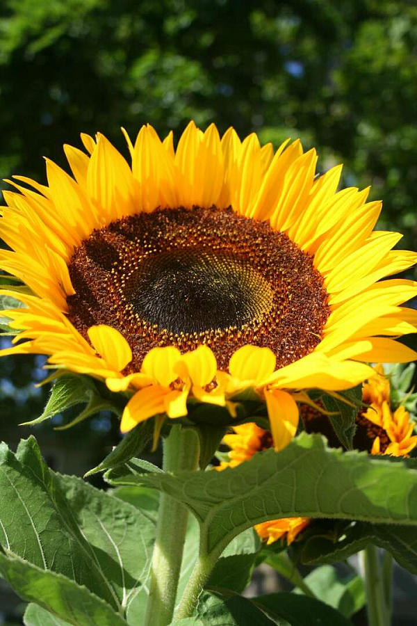Подсолнечник сорта Sunrich Orange - это яркое и энергичное растение, которое привнесет в ваш сад неповторимую атмосферу радости и тепла. Его стебель прочный и прямой, достигает высоты от 80 до 160 см, увенчанный крупными цветками желтого цвета диаметром 7-10 см. Листья подсолнечника имеют темно-зеленую окраску, создавая контраст с яркими соцветиями.