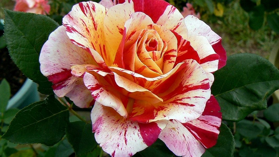 Роза сорта Maurice Utrillo (Морис Утрилло) была названа в честь известного художника-импрессиониста. Это изящные цветы ярко-красного цвета с желтыми полосками и крупными белыми пятнами. Цветы большие и ароматные. Растение устойчиво к заболеваниям и является повторноцветущим. Аромат кустарника в период цветения по-настоящему удивляет, он выраженный с нотками мха и грибов, при этом очень приятный. Листва темно-зеленая лощеная с голубым отливом, который говорит о здоровье растения и о его выносливости. При должном уходе роза становится украшением сада.