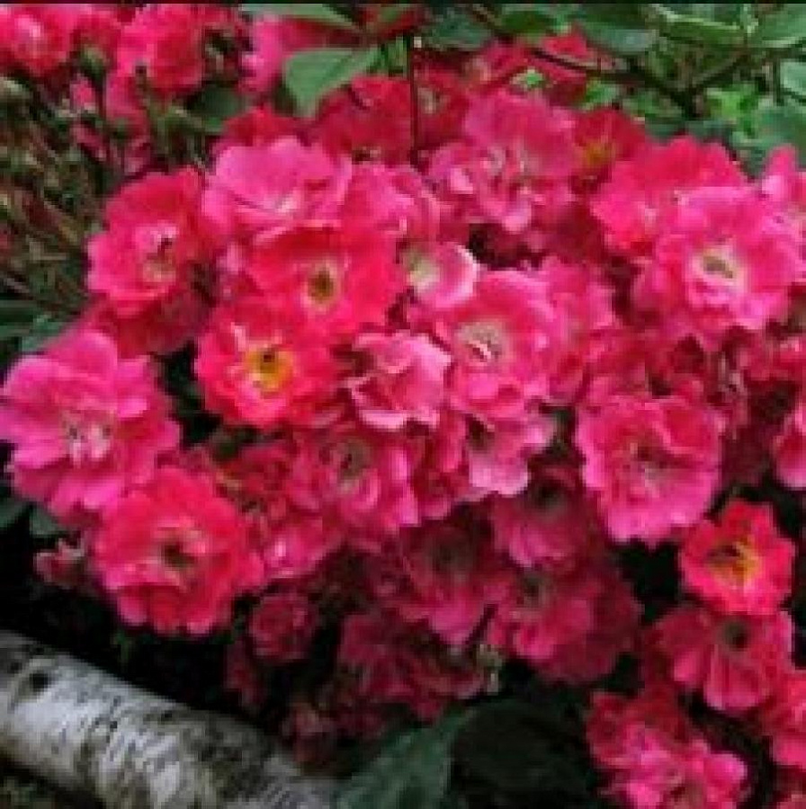 Саженцы розы полиантовой Орлеанс Роуз (Orleans Rose) неприхотливый сорт с изысканными карминно-красными цветами с желтыми серединками, выведенный именитыми Орлеанскими селекционерами. Главная особенность Розы Орлеана – густота соцветий (до 20 штук на побеге) и необычная форма цветков, напоминающая герань.