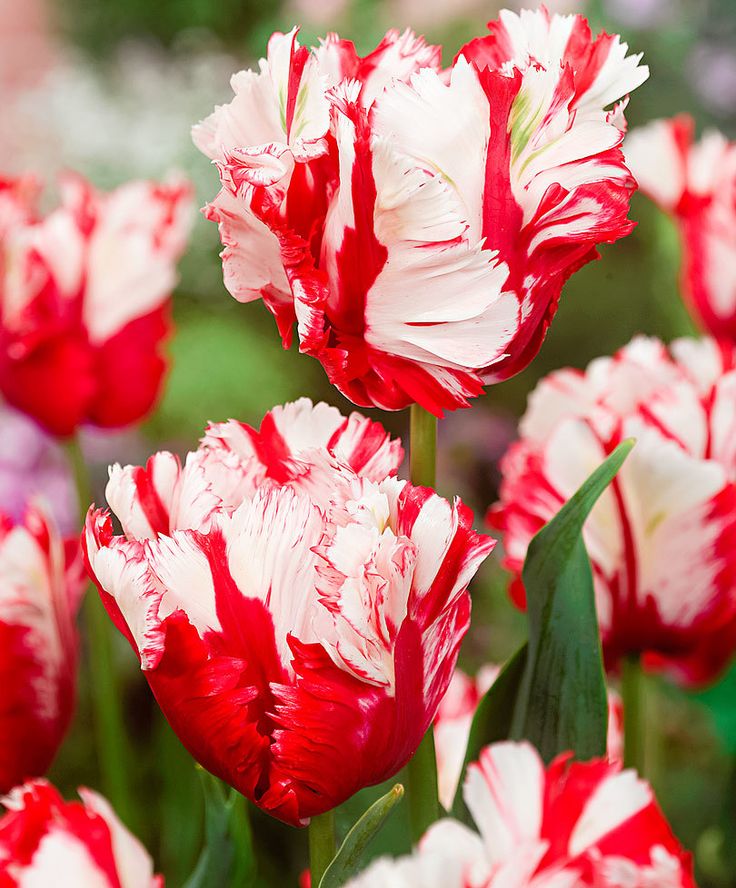 Луковицы тюльпана Эстелла Ринджвелд (Estella Rijnveld) дают отличное оригинальное растение из самого необычного вида тюльпанов – попугайных. Они имеют крупный пестрый бокал красно-белого цвета, напоминающий экзотического попугая. Это растение цветет в течение двух трех недель с середины мая. Ему нужны для посадок нейтральные почвы, если почва кислая, ее известкуют заранее. Кроме того правильными условиями в агротехнике являются: