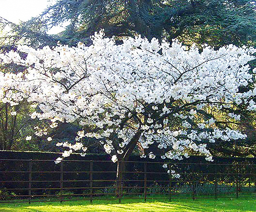Саженцы Вишни мелкопильчатой Тайхаку (Taihaku) ещё называют японской сакурой, впервые были вывезены из Японии в 1900 г. Вырастают в декоративное невысокое дерево, достигающее не более 10 метров во взрослом возрасте. Особенно красиво смотрится в период цветения, когда распускаются белые цветы. Вишня требовательна к месту посадки, крупномеры необходимо высаживать в местах, куда поступает максимальное количество солнечного тепла и света. Период цветения длится на протяжении всего апреля. Листья меняют расцветку на протяжении периода с весны до осени, от коричневого до желтого оттенков.